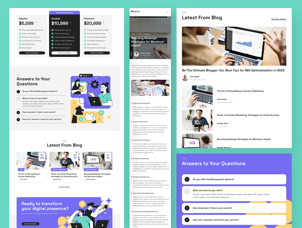 Show the creativity of your agency using DigiCraft, a creative and bright digital agency website Framer template.
