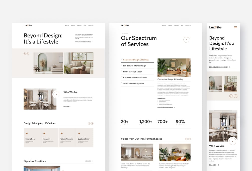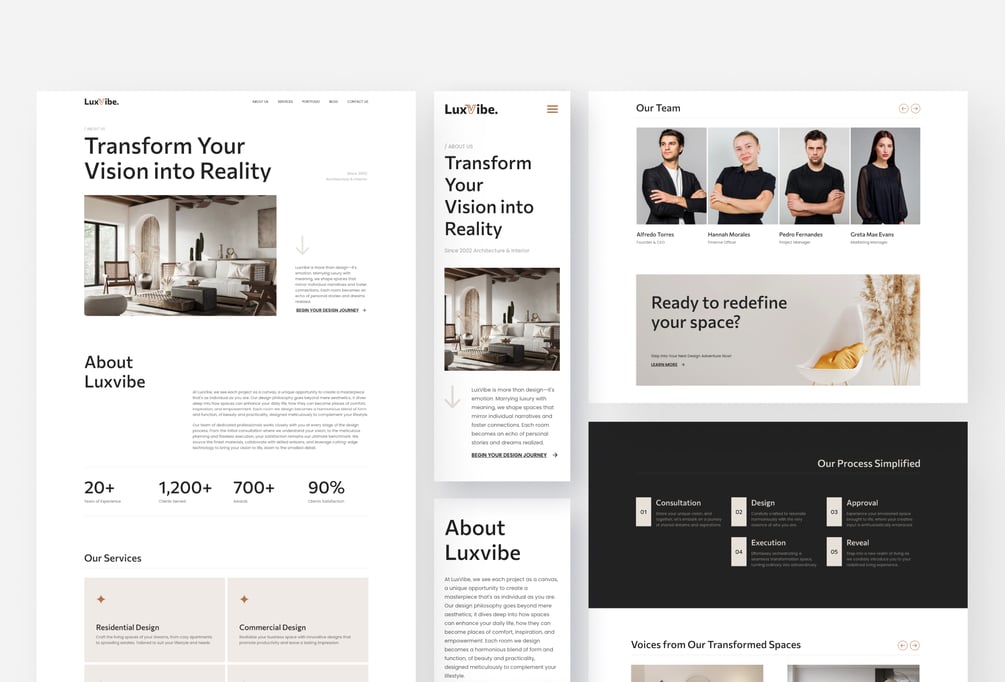 Show how professional you can be and provide convenience for your audience using LuxVibe, the clean and minimalist interior design Framer template.